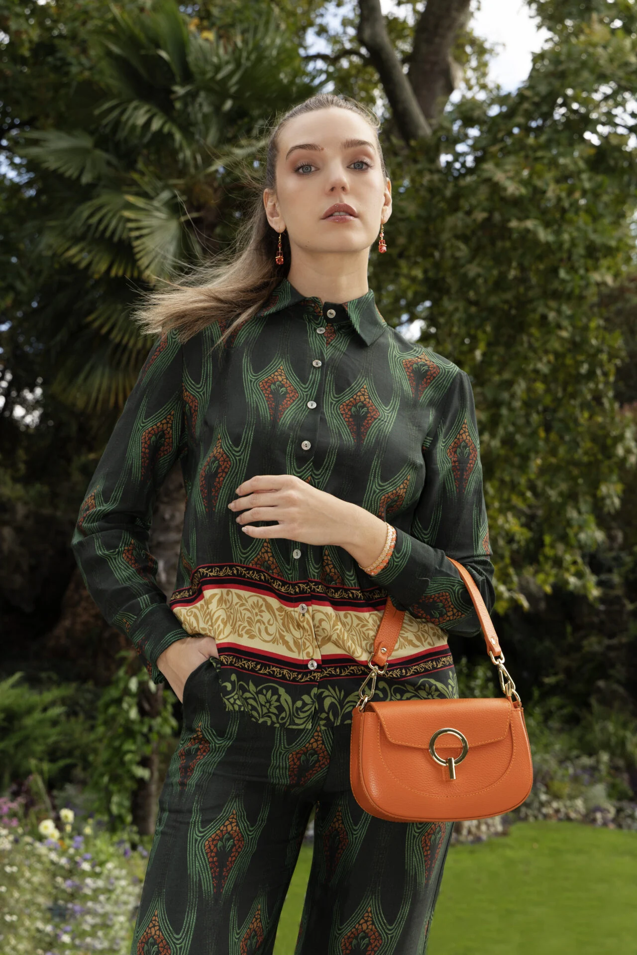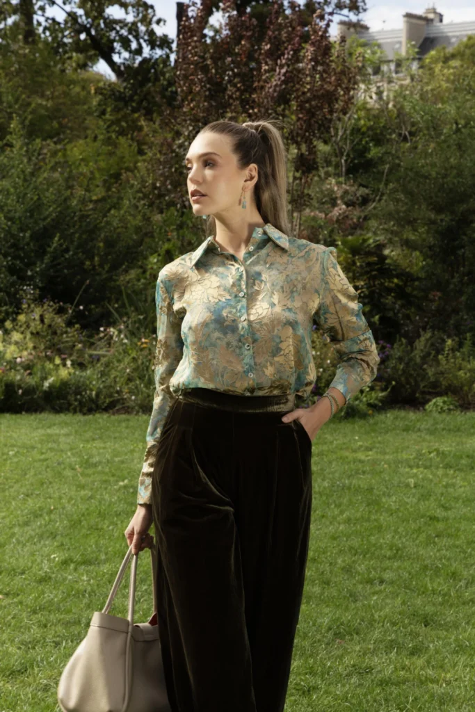 This lightweight viscose blouse stands out with its delicate print set against a deep green background. The soft, fluid fabric offers all-day comfort, while the flattering cut suits every silhouette. Made in Italy, it’s a versatile and elegant piece — perfect for both work and evening wear.