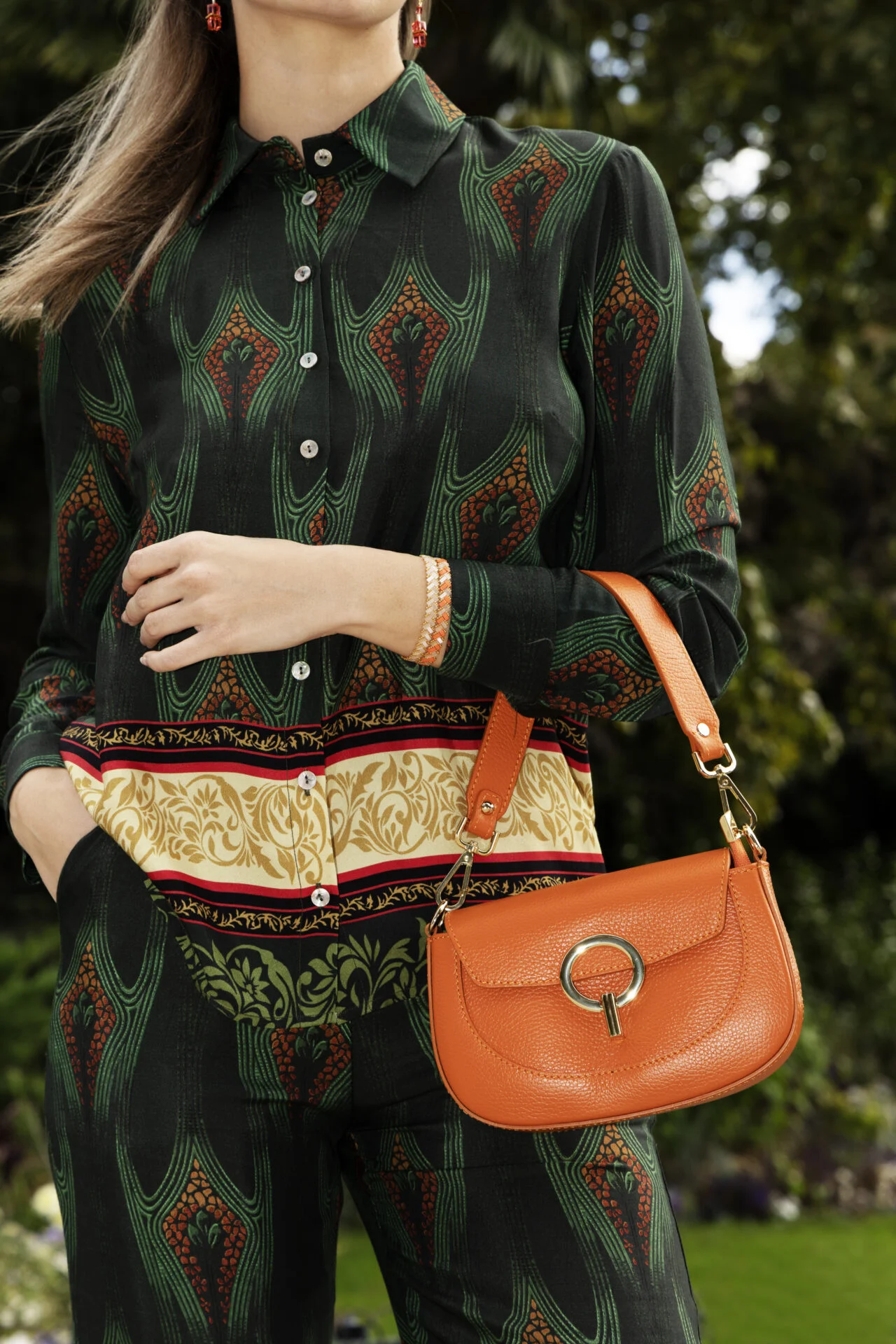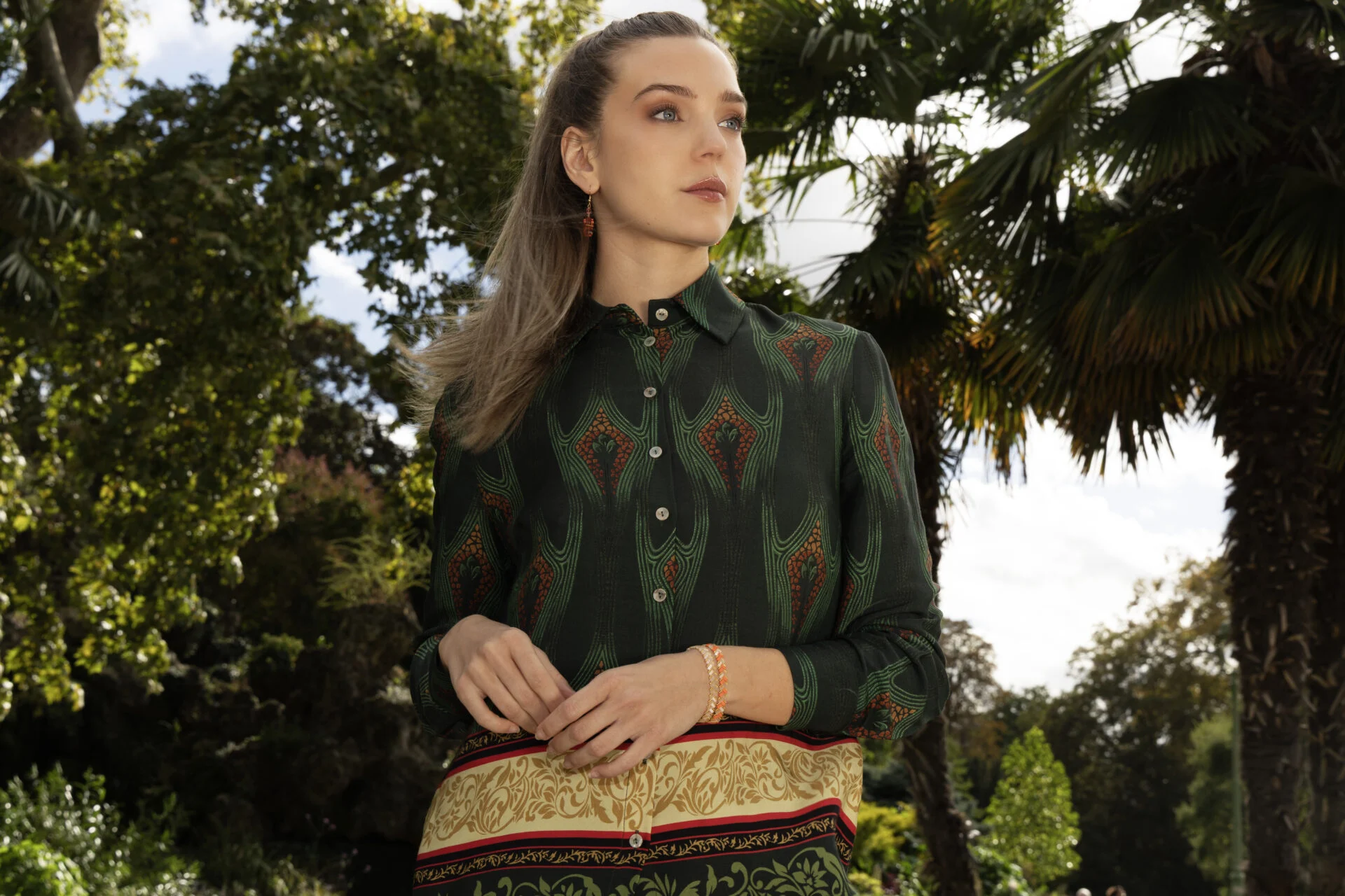 • Couleur : fond vert, imprimé contrasté
